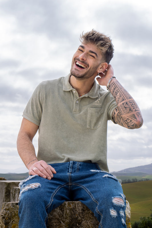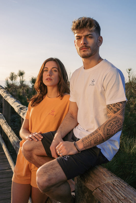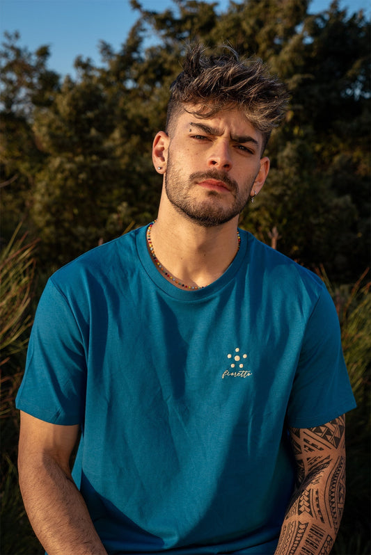 utilizziamo solo materiali riciclati e rispettosi dell'ambiente come il cotone organico e la plastica proveniente dagli oceani.